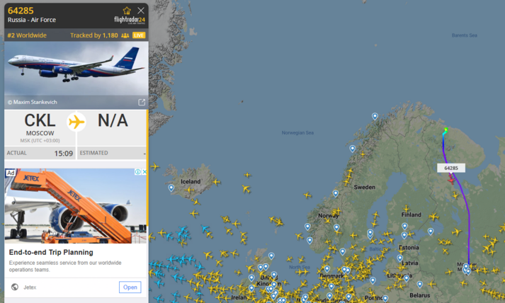 Урядові літаки РФ вирушили на схід країни, а один у бік Мурманська