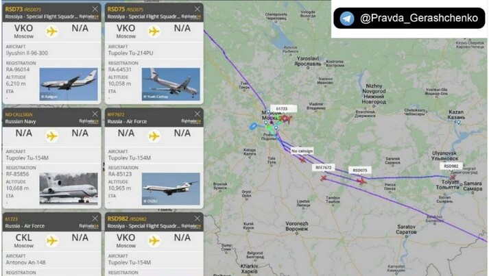 Сім літаків російського уряду екстрено вилетіли з Москви