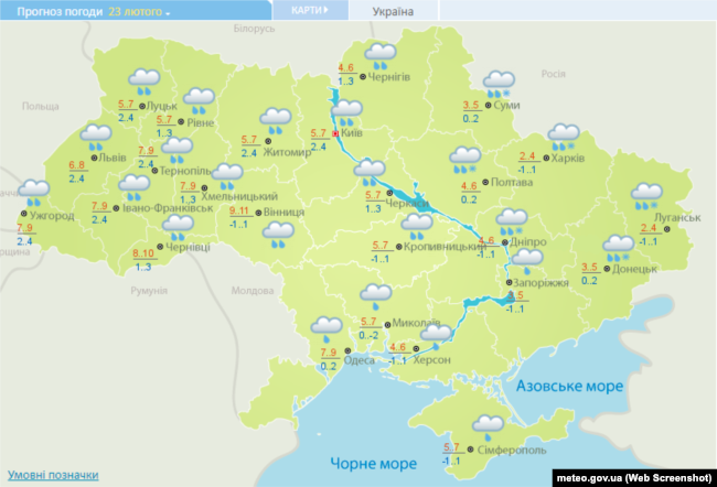 У неділю, 23 лютого, в Україні дощитиме