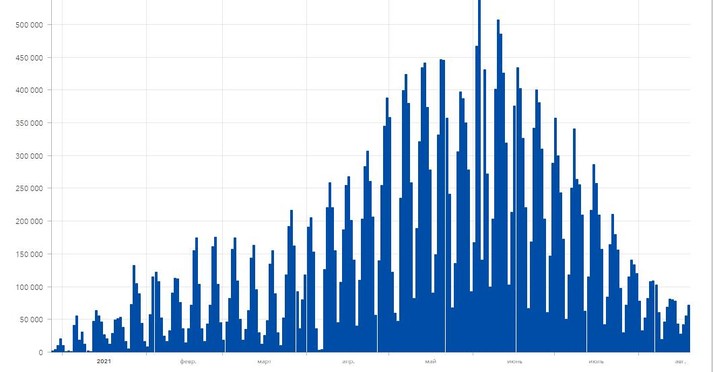 Зазначимо, в Україні у липні 2021 року темпи вакцинації не перевищували 153 тис. доз на добу, а кількість пунктів вакцинації на кінець липня становила близько 2 тис.