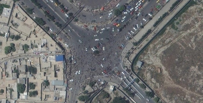 Зображення були зроблені 16 серпня о 10:36 ранку за місцевим часом. На них зображені тисячі людей біля аеропорту, а також сотні машин, що застрягли в заторах. Усі вони намагаються пробитися до літаків, щоб покинути країну, яку захопили таліби.