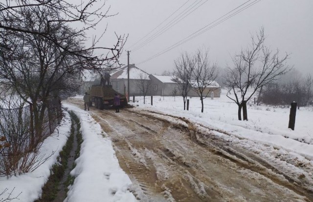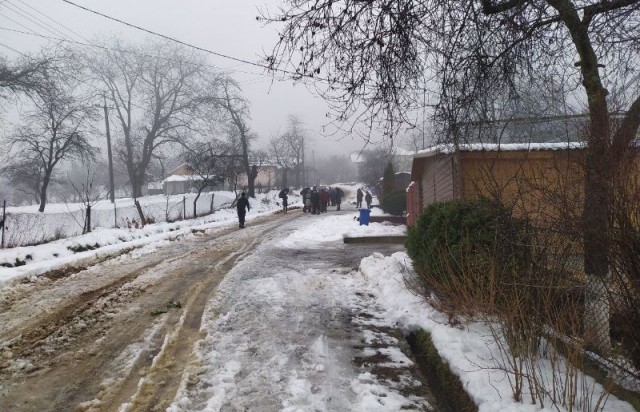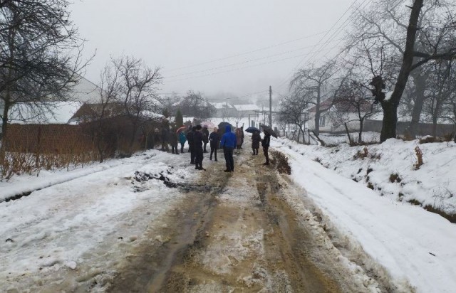 Люди вийшли на протест, щоб вантажівки далі не псували дорогу в селі
