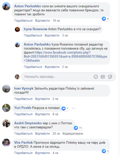 Заступниця головного редактора журналу Cosmopolitan Ukraine Євгенія Пліхіна на своїй фейсбук-сторінці висміяла похорон полковника ЦСО «Альфа» СБУ, 37-річного снайпера Дениса Волочаєва, який загинув, виконуючи бойове завдання на Донбасі.
