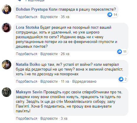 Користувачі соцмережі в коментарях до інших дописів модної журналістки висловлюють обурення її позицією. Люди, зокрема, цікавляться, коли її звільнять або коли вона переїде до РФ.