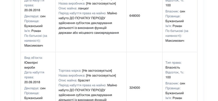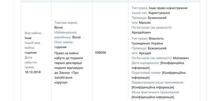 Крім того, Бужанський носить годинник за понад 500 000 грн. Має зарплату за рік 478 000 грн.