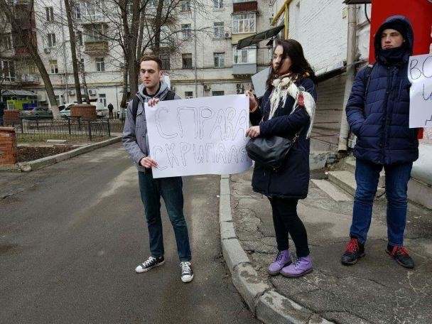Єдині, хто прийшов провести вигнанців, були до десятка молодих активістів з плакатами на підтримку рішення України
