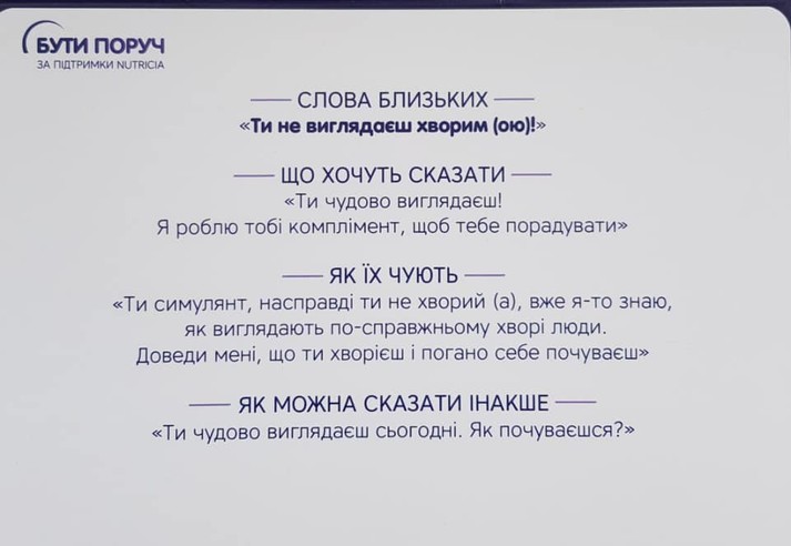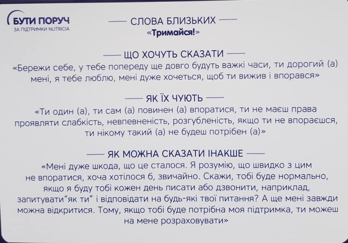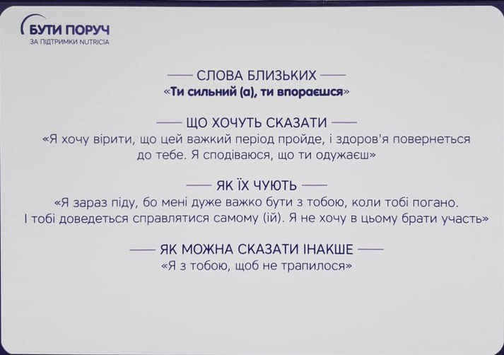 Вона радить уважно їх прочитати, бо «навіть не уявляла, наскільки по-іншому можуть сприйматися звичні «тримайся!» або «ти сильний, ти переможеш».