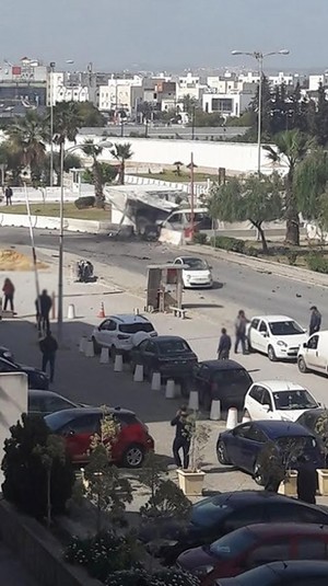 Local media says, terrorist blew himself up while riding a motorcycle, targeting a security patrol near the #US Embassy in #Tunisia pic.twitter.com/2DDH8KcLiX