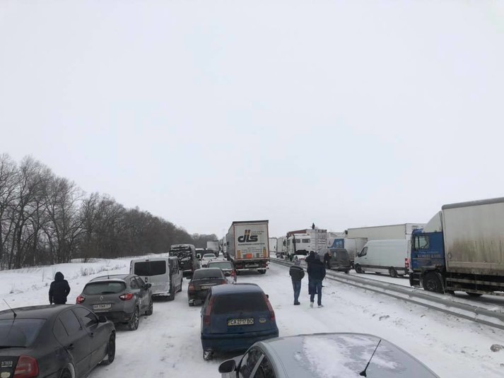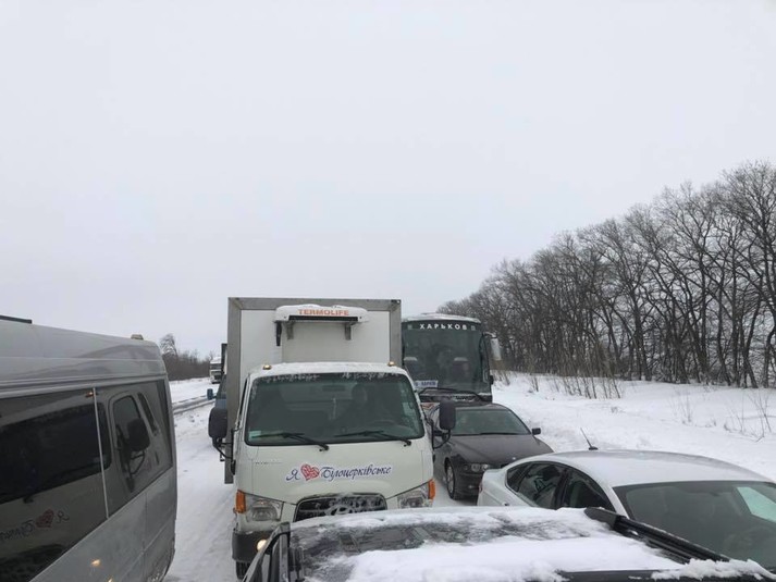 Сніговий колапс: люди з дітьми їдуть із Києва до Харкова другу добу