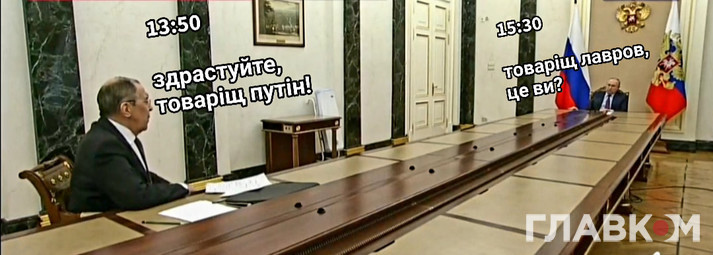 На світлинах обидва міністри під час зустрічі із Путіним перебувають на досить великій відстані від нього, сидячи практично із протилежного боку довжелезного столу.