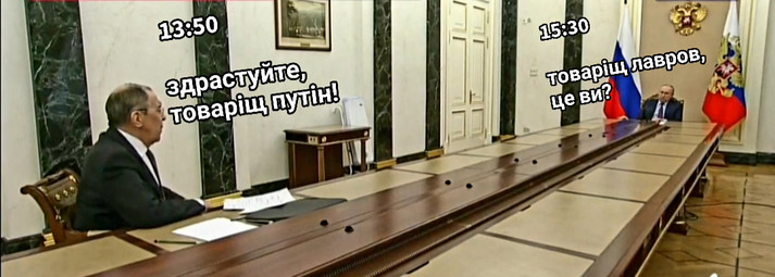 13:50: «Здраствуйте, товаришу Путін» – 15:30: «Товаришу Лавров, це ви?», – таким чином за версією користувачів Facebook відбувалося спілкування російського президента із підлеглими.