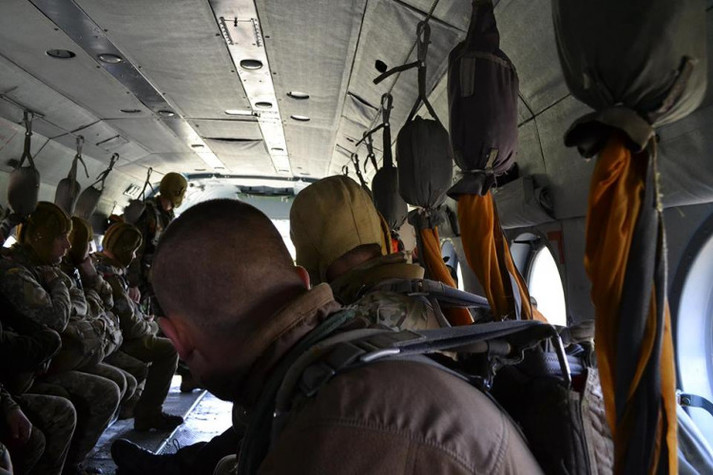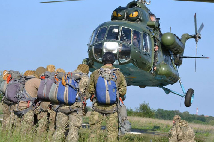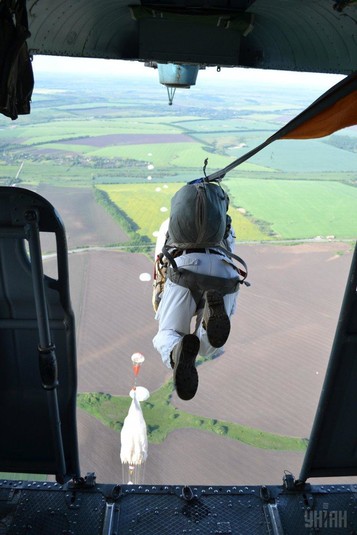 Зокрема, спецпризначенці стрибнули с парашутами з військово-транспортного вертольоту Мі-8МТ.
