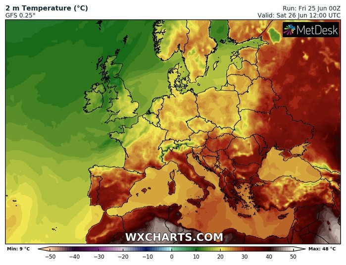 Додамо, що в четвер, 24 червня, в Києві середньодобова температура повітря становила +28,1°С, що на 1,6°С вище рекордного значення температури для цього дня 1924 року.
