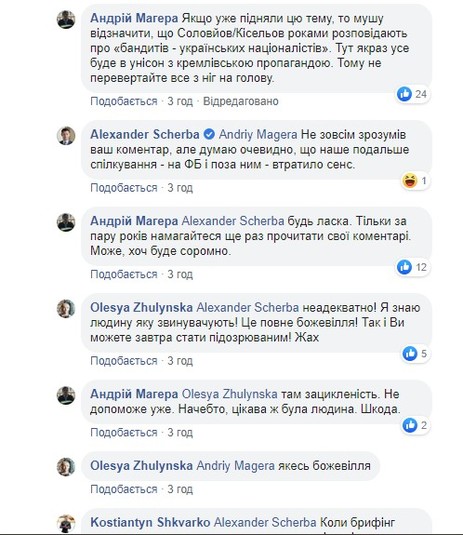 Після словесної перепалки Щерба заявив, що подальше спілкування з Магерою у Facebook і поза ним – «втратило сенс».