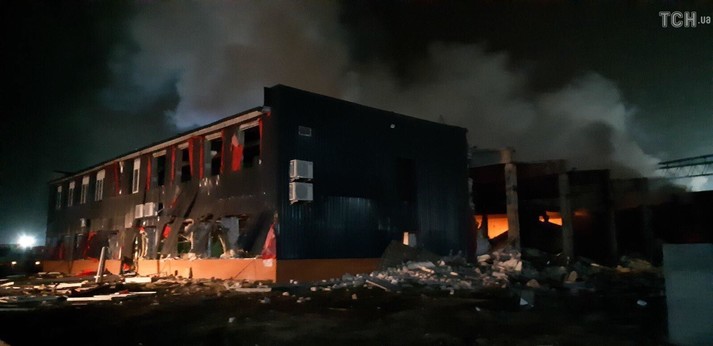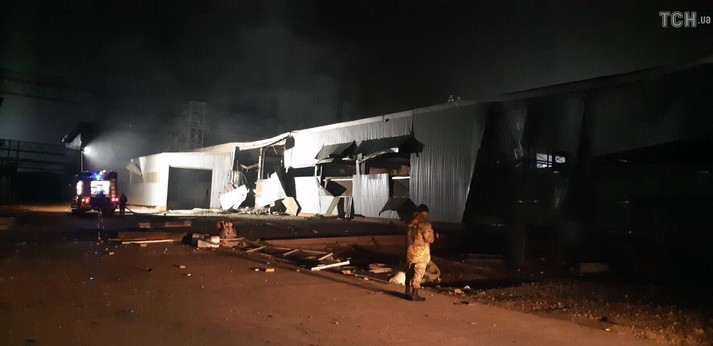 Відразу після вибуху почалася пожежа на складі з сировиною