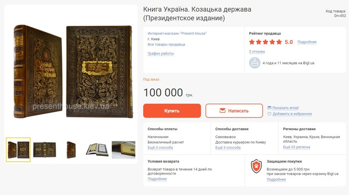 Водночас нардепи не знають, яке саме видання було придбано, адже вартість цієї книги варіюється. У мережі її можна придбати як за кілька тисяч гривень, так і «президентське видання» за 100 тис. грн і навіть 120 тис. грн.