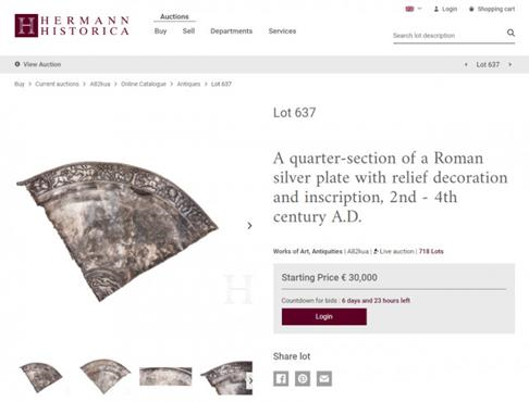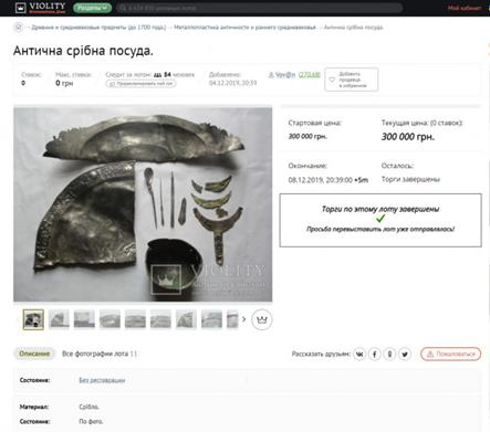 Так, на одному з німецьких аукціонів старожитностей виставили фрагменти посуду з рубленого срібла, які наприкінці минулого року були знайдені в Україні. Вироби датуються III століттям н.е. В цей час рубане срібло Римська імперія використовувала як дипломатичний інструмент для подарунків або субсидій певним групам «варварів» і як форму військової оплати найманцям з-за кордону, які служили Риму. Подібних речей немає в жодному українському музеї.