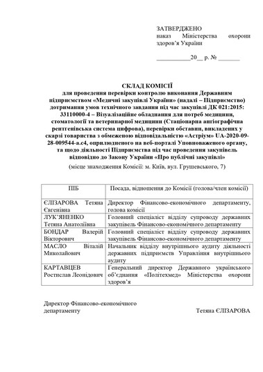 Міністерство охорони здоров'я України ініціює перевірку державного підприємства «Медзакупівлі України» за фактом процедури закупівлі ангіографів. Перевірка триватиме з 21 до 24 грудня. Про це повідомила пресслужба Медичних закупівель та опублікувала відповідний наказ.