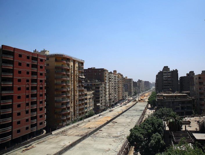 У єгипетському місті Гіза, передмісті Каїра, будують швидкісну магістраль, яка з'єднає дві місцеві кільцеві дороги. На одній з вулиць естакада траси проходить буквально за півметра від існуючої забудови, - на рівні шостого поверху.