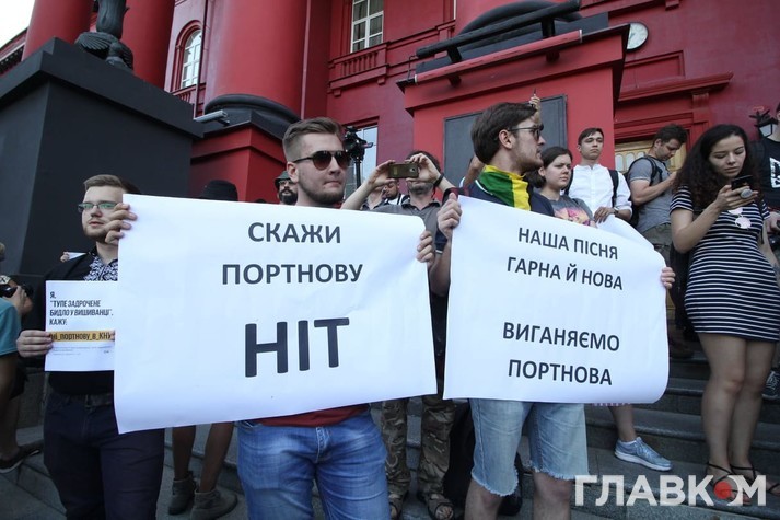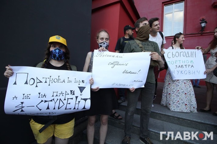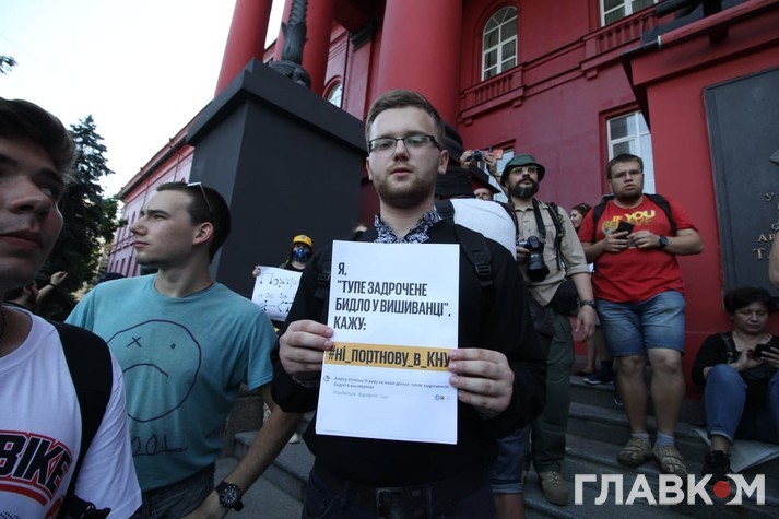 В Національному університеті ім. Тараса Шевченка 20 червня студенти проводять акцію протесту проти колишнього заступника глави Адміністрації президента Віктора Януковича Андрія Портнова, якого поновили на посаді професора кафедри конституційного права юридичного факультету.