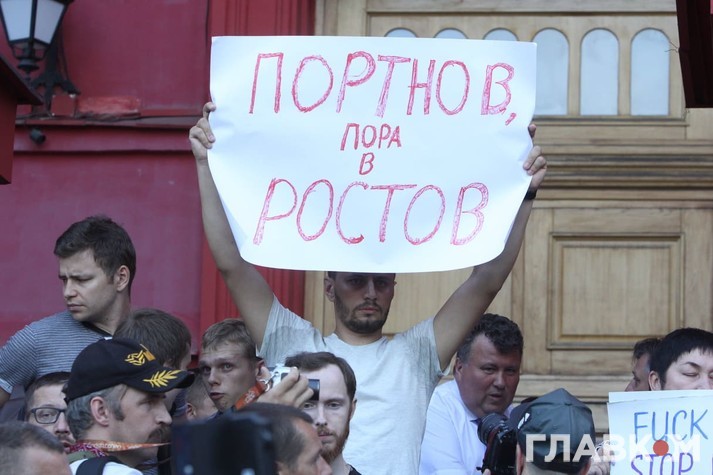 Студенти вигукують «Ні реваншу!», «Портнов - це Янукович», «Портнов, тікай в Ростов» і обіцяють чекати приходу ректора Леоніда Губерського.