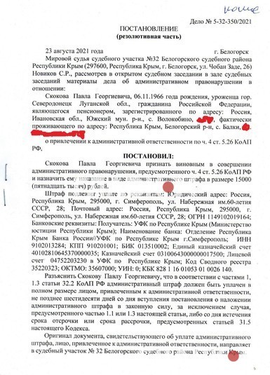 Так званий Мировий суд окупованого міста Білогорськ, що в Криму, оштрафував настоятеля чоловічого монастиря Святого Димитрія Солунського, архімандрита Даміана на 15 тисяч рублів. Про це сам настоятель храму повідомив «Главкому» та надав нашій редакції копії постанови.
