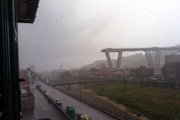 У мережі з'явилося відео з моментом обвалу частини автомобільного мосту, яким проходила платна автомагістраль A10, біля міста Генуя на півночі Італії.