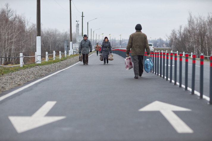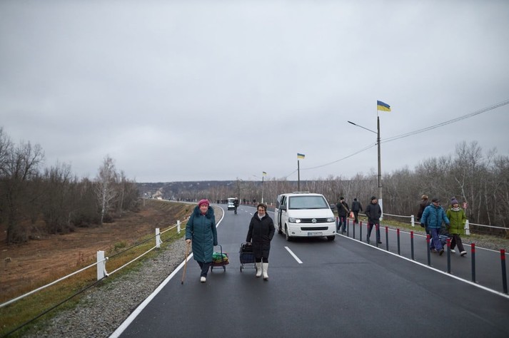 Зеленський наголосив: «Одразу випереджаю маніпуляції: танк проїхати не зможе – міст надто вузький для цього. Зате по ньому може легко проїхати швидка, можна перевезти продукти, не треба надважких зусиль, щоб просто перейти з одного боку на інший».