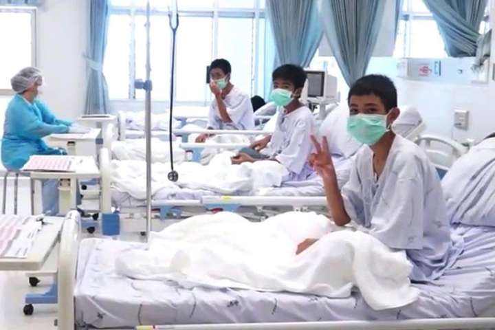У Таїланді вперше оприлюднили фото врятованих із затопленої печери хлопчиків, які перебувають у лікарні. Усі вони почуваються добре.