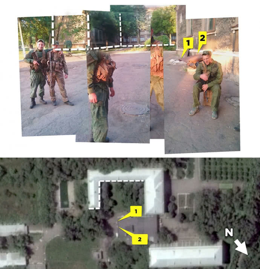 Об'єднавши зображення будівель та інших орієнтирів на задньому плані фотографій, дослідники визначили, що на них зображено П-образну будівлю, що використовується 11-тим мотострілковим полком бойовиків «Восток», яка знаходиться в Макіївці.