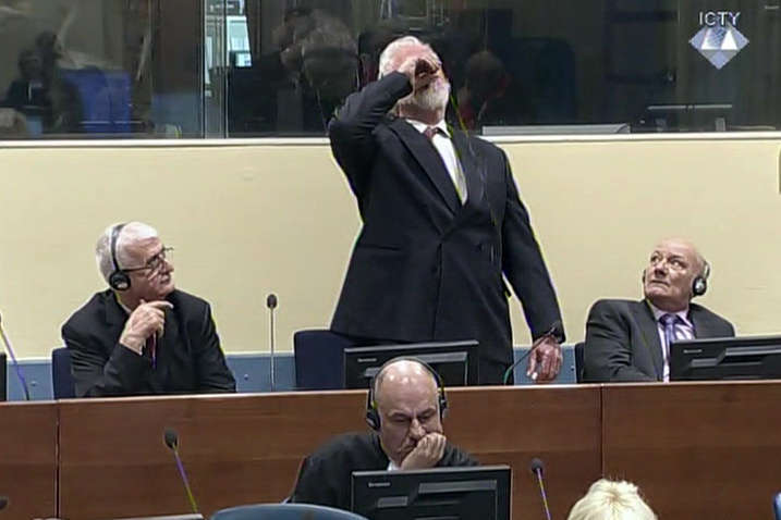 Раніше повідомлялося, що під час засідання Міжнародного трибуналу по колишній Югославії генерал Слободан Пральяк прийняв отруту після оголошення вердикту.