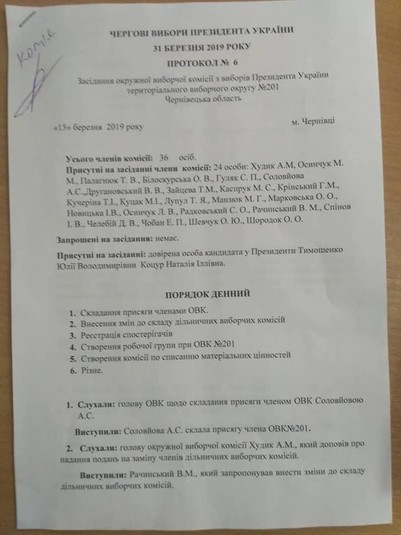 За його даними, довірена особа кандидата у президенти Юлії Тимошенко у Чернівецькій області Н аталія Коцур звернулася до членів ОВК №201 через неї вирішувати всі питання, які виникатимуть з представниками технічних кандидатів.