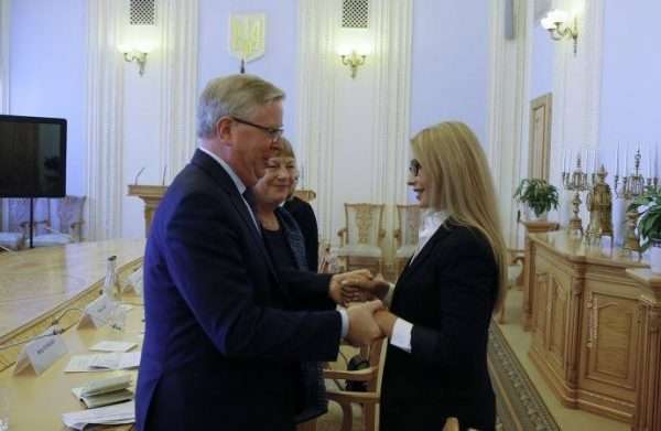 Новим іміджем народний депутат, лідер Батьківщини Юлія Тимошенко здивувала на зустрічі з керівником програми Європарламенту Петом Коксом.