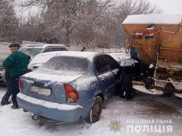 У місті Ізюм Харківської області трактор, що посипав дороги, протаранив кілька автомобілів, у тому числі, й поліцейську машину. Аварія сталася 20 листопада о 10:55 по вулиці Гагаріна, уточнили в обласній поліції.
