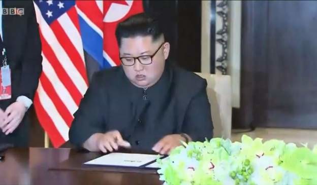 Під час підписання Кім Чен Ин зазначив, що завдяки цьому документу світ побачить зміни та подякував американському президенту за можливість зустрітися з ним.