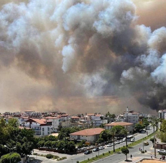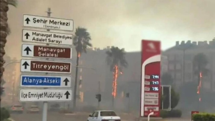 Також пожежа дісталася міста Манавгат, частково охопивши центральні квартали. У гасінні беруть участь і місцеві жителі, але боротися з вогнем заважає сильний вітер, який жене його на житлові райони.