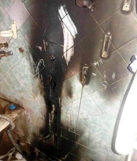 Працівники поліції під час огляду місця події виявили обвуглену побутову техніку – пральну машину. Причини вибуху встановлюються.