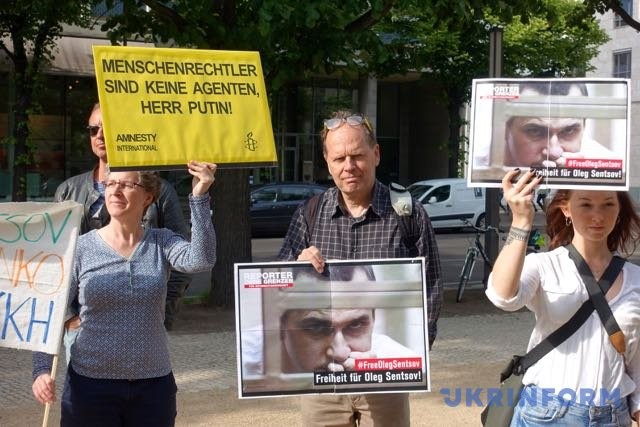 «Ми вважаємо за потрібне вийти сюди сьогодні, майже рівно через чотири роки, як був заарештований український режисер Олег Сенцов, і продемонструвати свою солідарність, це важливо тим, хто сидить, ми не повинні бути байдужими», - сказала агентству берлінська активістка Фрідеріке Фрайєр.