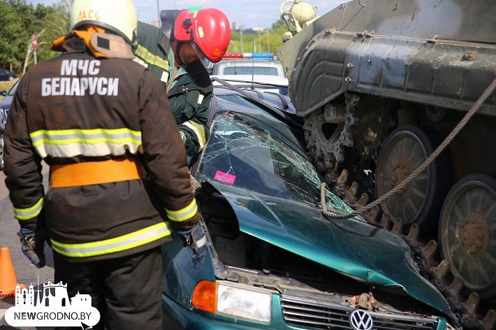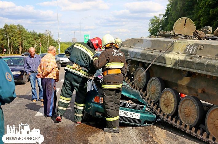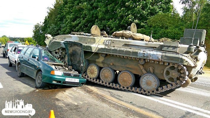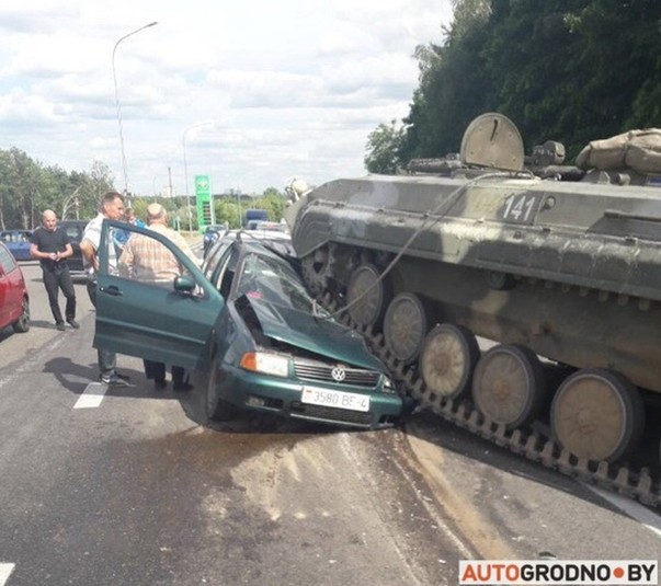 На автотрасі неподалік білоруського Гродно бойова машина піхоти (БМП) розчавила легковий автомобіль Volkswagen, всередині якого знаходився водій.