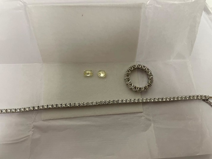 У різних місцях ручної поклажі громадянина Ізраїлю 1962 року народження правоохоронці виявили браслет з білого золота та каблучку оздоблені діамантами, а також два діаманти жовтого кольору з сертифікатами «GIA» загальною вагою 2.21 карат, повідомляє офіційний сайт Державної прикордонної служби.