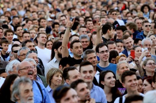 Люди заповнили усю площу Лайоша Кошута в центрі Будапешта і бічні вулиці.