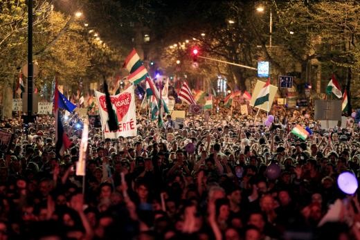 У центрі столиці Угорщини, Будапешта, відбувається антиурядова акція протесту, в якій беруть участь десятки тисяч людей.