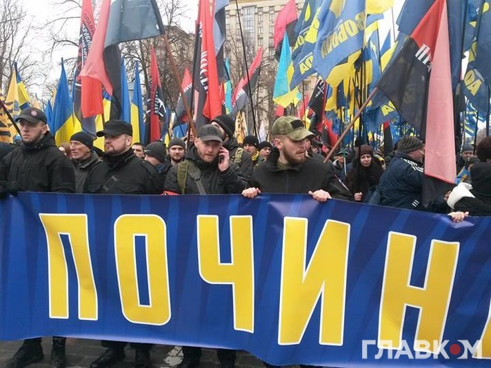 У Києві розпочався марш націоналістичних організацій – партій «Свобода», «Національний корпус» (створена на основі цивільного корпусу «Азов») і «Правий сектор».