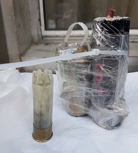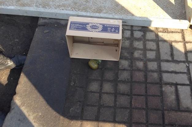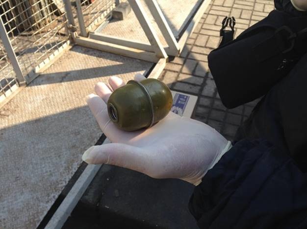 Згодом на вулиці Михайлівській у киянина поліцейські вилучили перемотані скотчем світлошумову гранату та предмет, схожий на петарду.