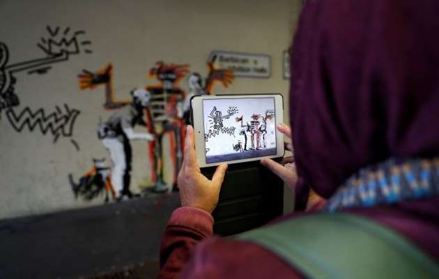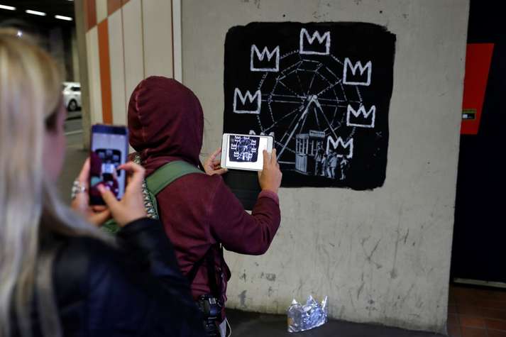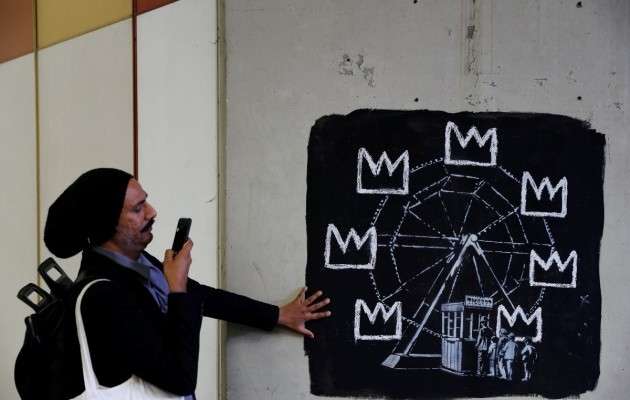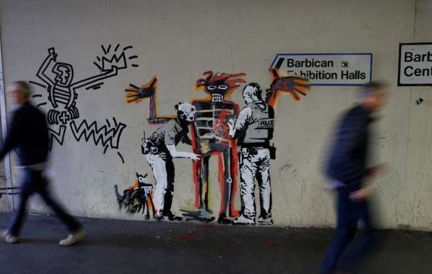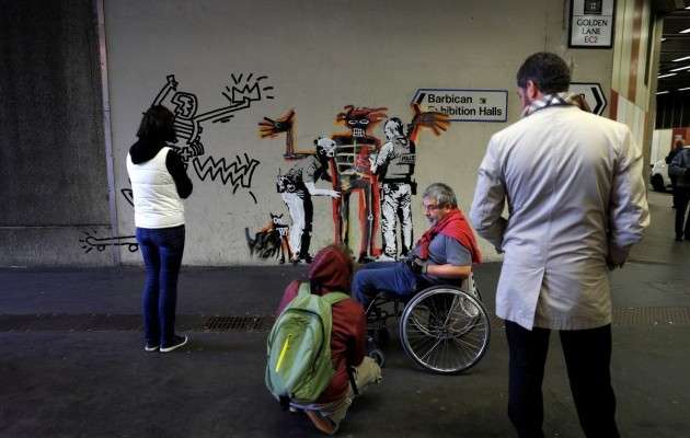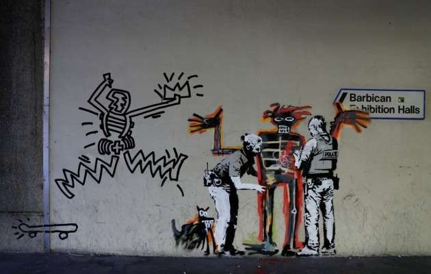 Роботи, які прикрасили міські стіни біля Культурного центру Барбікан, приурочені до відкриття виставки американського художника Жана-Мішеля Баскія. Нью-Йоркський художник помер в 1988 році у віці 27 років через передозування наркотиків.