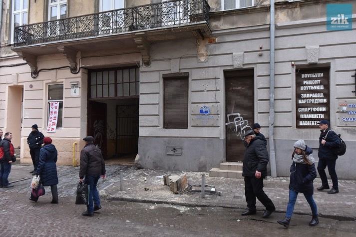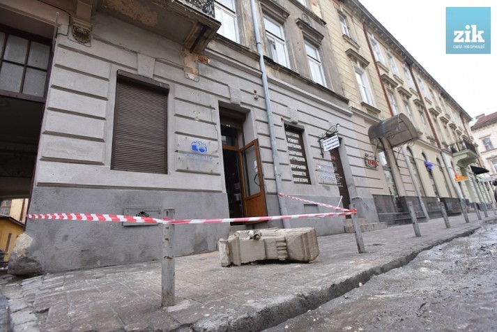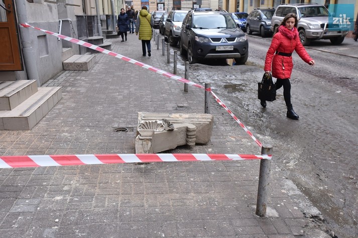 Як повідомлялося, 17 лютого у центрі Львова обвалився фрагмент карниза будинку. Лише завдяки випадковості та миттєвій реакції перехожого ніхто не постраждав.
