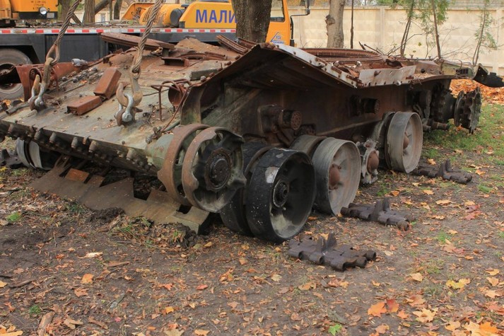 Прес-служба пише, що танк був підбитий близько року тому під час чергової спроби ворога атакувати українські позиції біля села Березове Донецької області. Донедавна танк залишався за 200 метрів від зони ведення вогню противником. Евакуювати «експонат» без ризику для життя наші військові змогли тільки зараз.