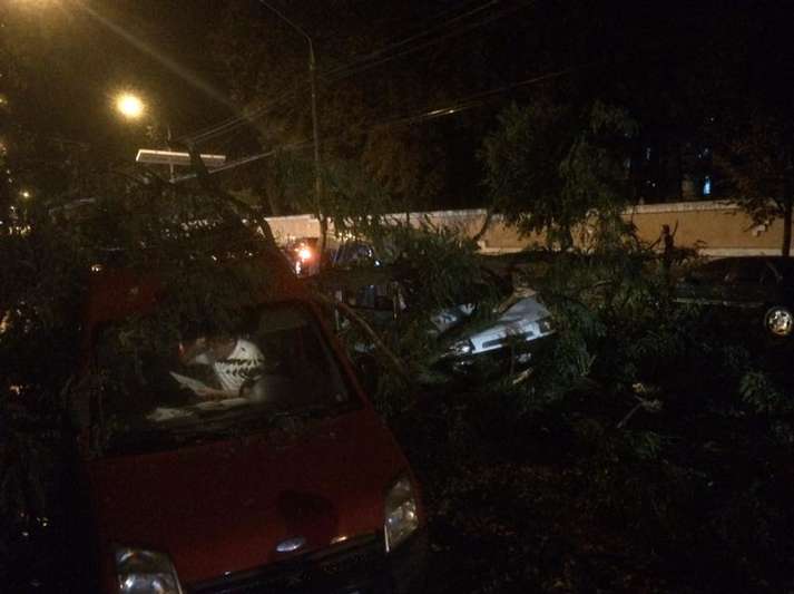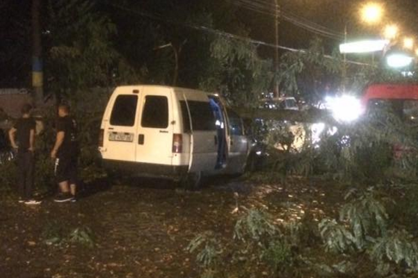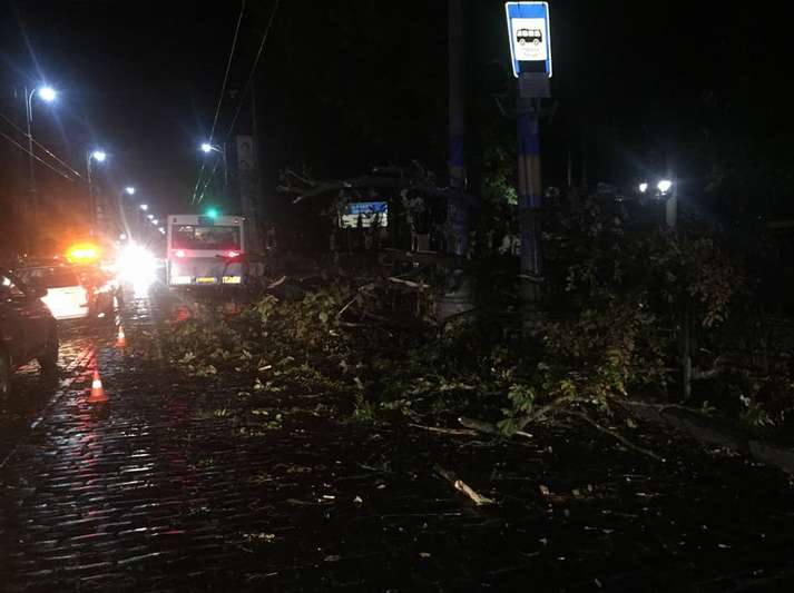 Внаслідок негоди по всьому місту повалило десятки дерев, біля вулиці Головної пошкоджено припарковані машини. Рух на дорозі по вулиці Галицький Шлях заблокований через повалені дерева.