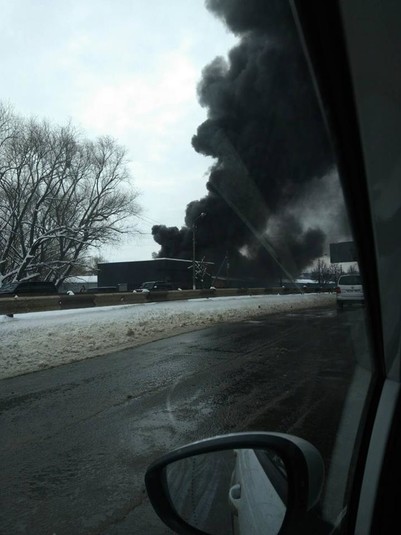 Від пожежі над містом піднявся величезний стовп чорного диму, який, за даними очевидців було видно з різних частин міста.
