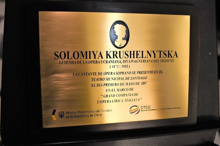 24 квітня 2019 року у чилійській столиці Сантьяго було відкрито меморіальну дошку видатній українській оперній співачці Соломії Крушельницькій. Захід відбувся у центральному Муніципальному театрі, де в 1897 році виступала українська оперна діва.